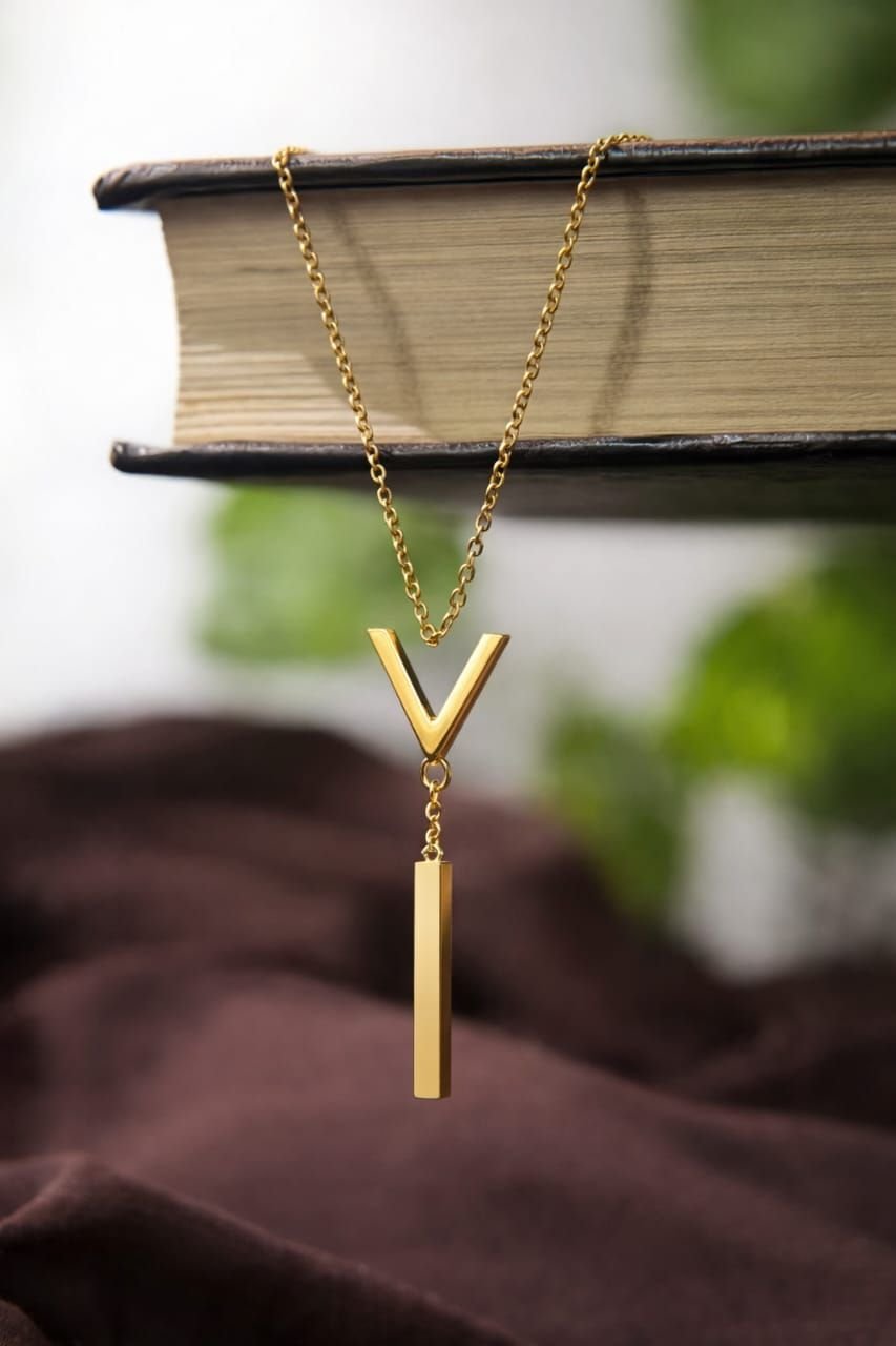 Gold Plated Letter V Pendant Necklace