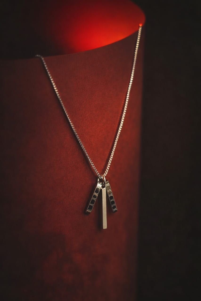 Silver Tone Trio Bar Pendant Necklace