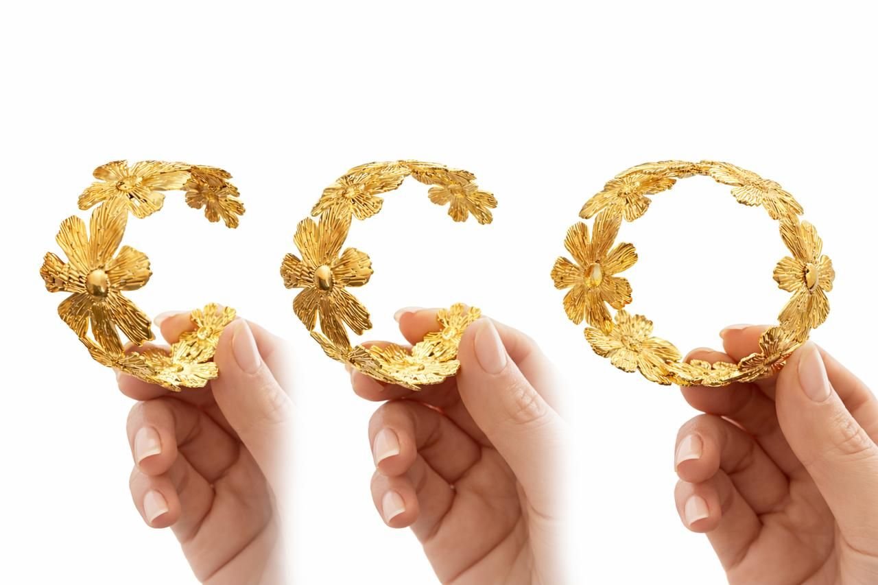 Gold Plated Floral Cuff Bangle