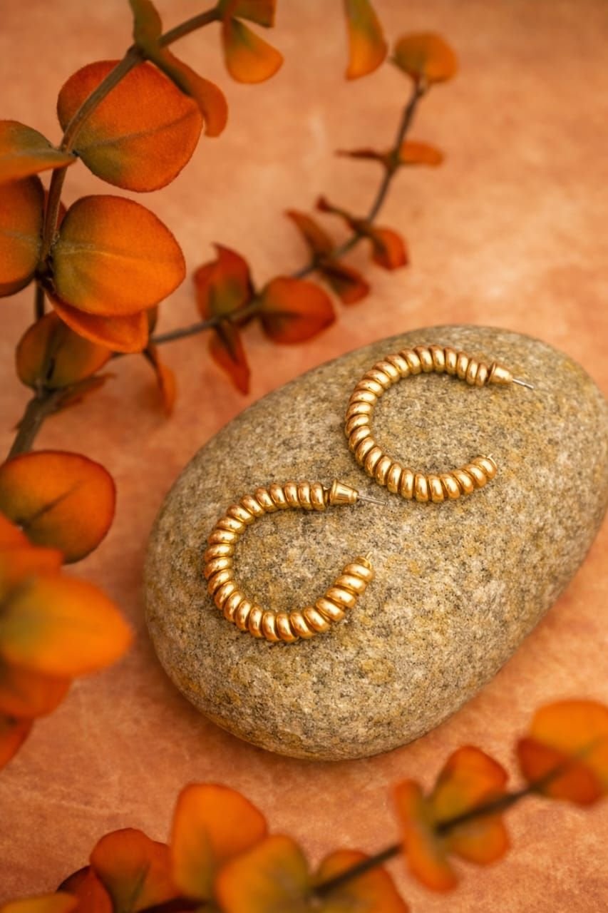 Gold Plated Ribbed Hoop Earrings